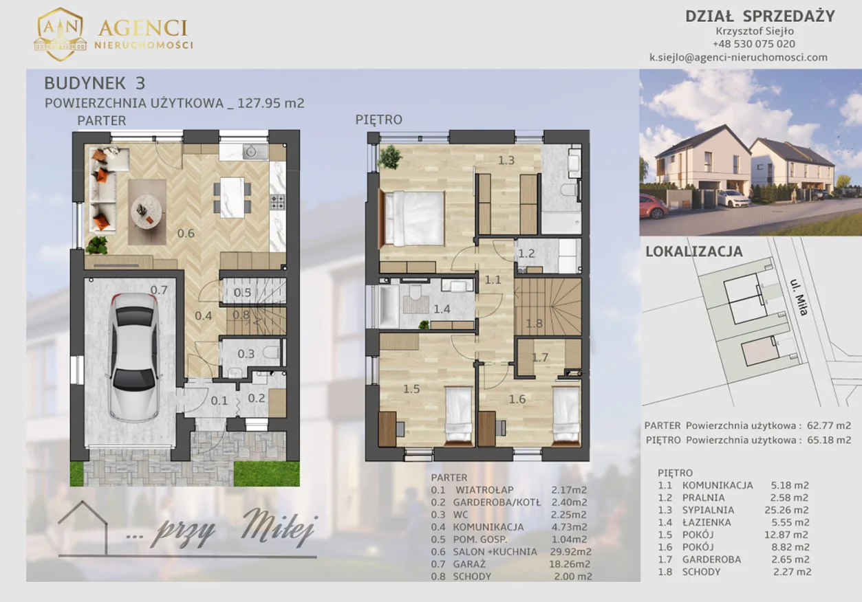 Lokalizacja Przy Miłej zapewnia doskonałe połączenie z centrum miasta, bliskość sklepów i usług, a jednocześnie spokój i kameralny klimat osiedla. To dom, który daje więcej – więcej przestrzeni, więcej możliwości i więcej komfortu każdego dnia.